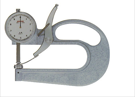 它的主要結(jié)構(gòu)由表盤、指針、測頭、測力調(diào)節(jié)器、固定架等組成。它的測量范圍為0-10mm,分度值為0.01mm,喉深為120mm