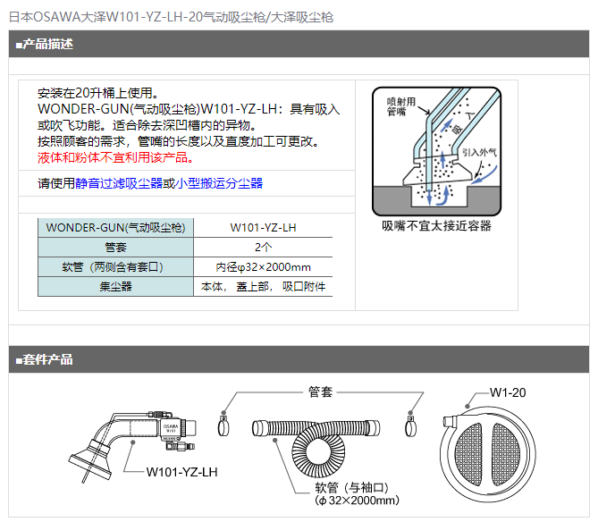 日本OSAWA大澤W101-YZ-LH-20氣動吸塵槍