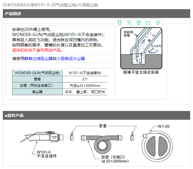 日本OSAWA大澤W101-II-20氣動吸塵槍