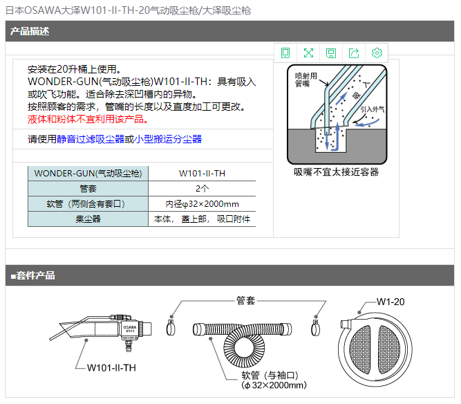 日本OSAWA大澤W101-II-TH-20氣動(dòng)吸塵槍