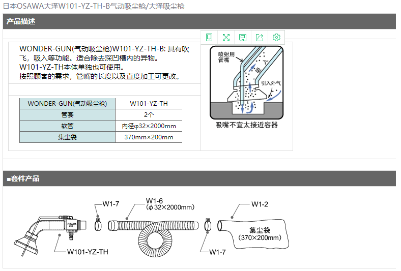> 日本OSAWA大澤W101-YZ-TH-B氣動吸塵槍