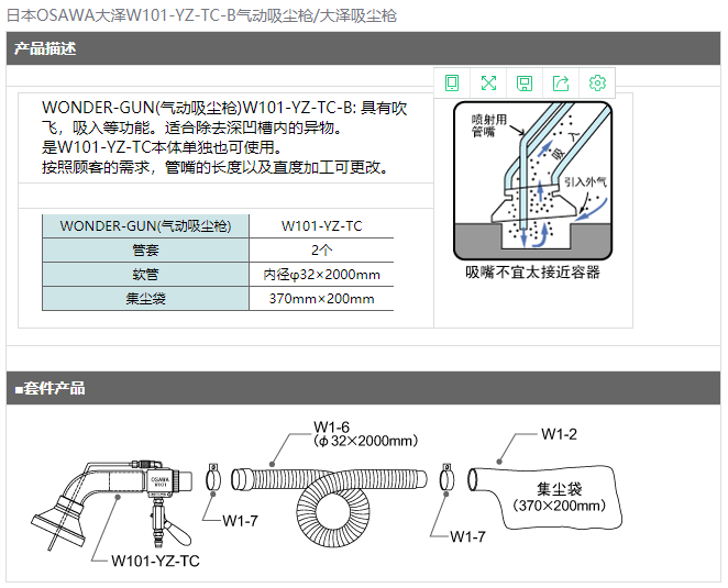 日本OSAWA大澤W101-YZ-TC-B氣動吸塵槍