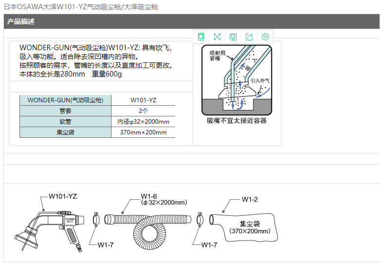 日本OSAWA大澤W101-YZ氣動吸塵槍