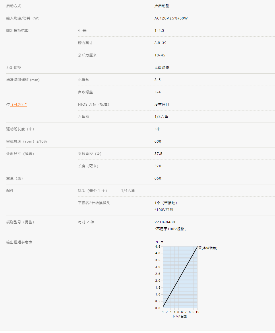 日本進口好喔速VZ-4506PS電動螺絲刀帶防震支架