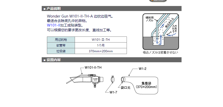大澤osawa吸塵槍日本進口W101-II-A(不帶軟管接頭)