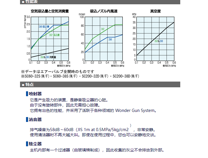 Silent Cleaner SC60-38SW/F 是在SC60-38S中加入了濾塵器的產(chǎn)品??梢允褂脡嚎s空氣(壓縮機空氣)作為驅(qū)動源進行抽吸。強力收集谷物、小礫石、金屬碎片等,傳統(tǒng)工業(yè)清潔劑無法有效收集這些物質(zhì)。非常適合任何工作場所。級結(jié)構(gòu)/多重過濾器!長時間連續(xù)使用OK!吸力強、降噪的吸塵器。重量:23kg 高度:1,011mm 寬度:550mm吸嘴:外徑:38mm 長度:700mm吸管:內(nèi)徑:38mm,長度:2000mm帶60 升不銹鋼罐、腳輪和灰塵過濾器。